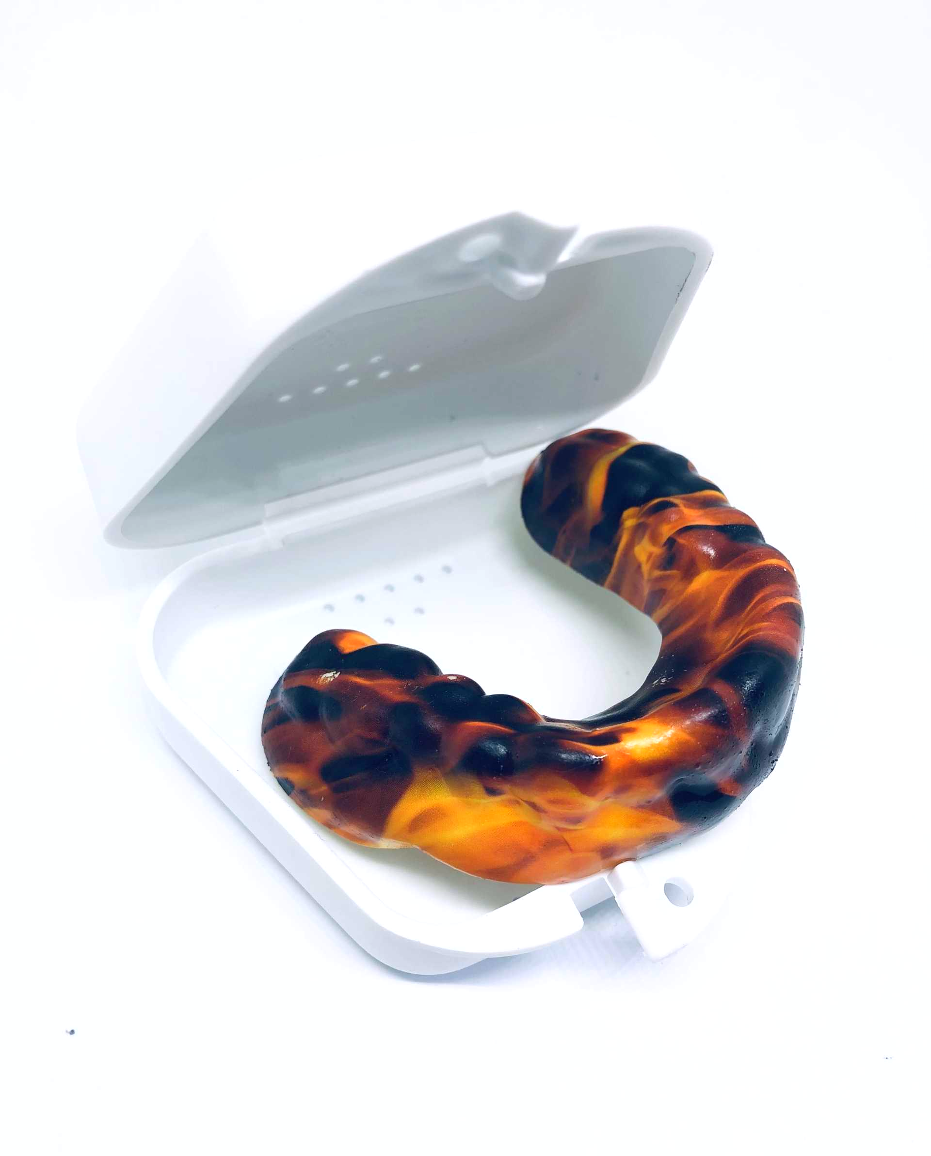 Férula blanda perfectamente termoadaptada a los dientes, de material elástico. Cuenta con una parte de material más rígido y resistente, preparado para resistir altos impactos que se producen en deportes de alto contacto.